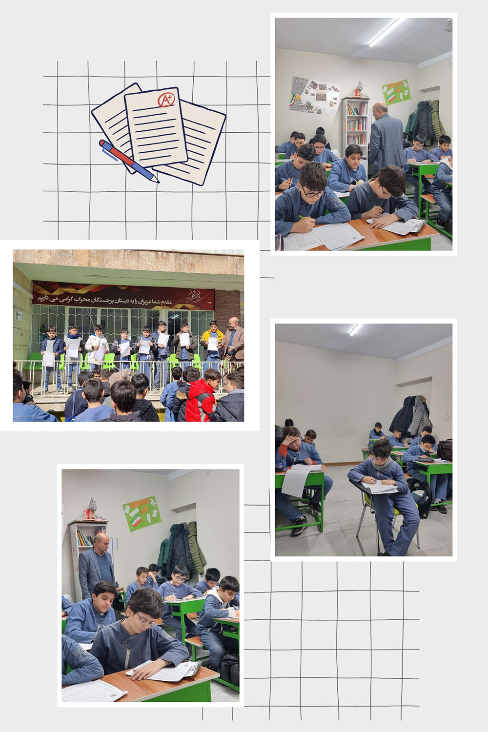 در راستای ارزیابی دقیق روند آموزشی و ارتقای سطح علمی دانش‌آموزان، آزمون‌های دوره‌ای در دبستان برجستگان محراب برگزار شد. این آزمون‌ها فرصتی بودند تا دانش‌آموزان میزان تسلط خود بر مفاهیم درسی را محک بزنند و مهارت‌های تحلیلی و یادگیری خود را به نمایش بگذارند.