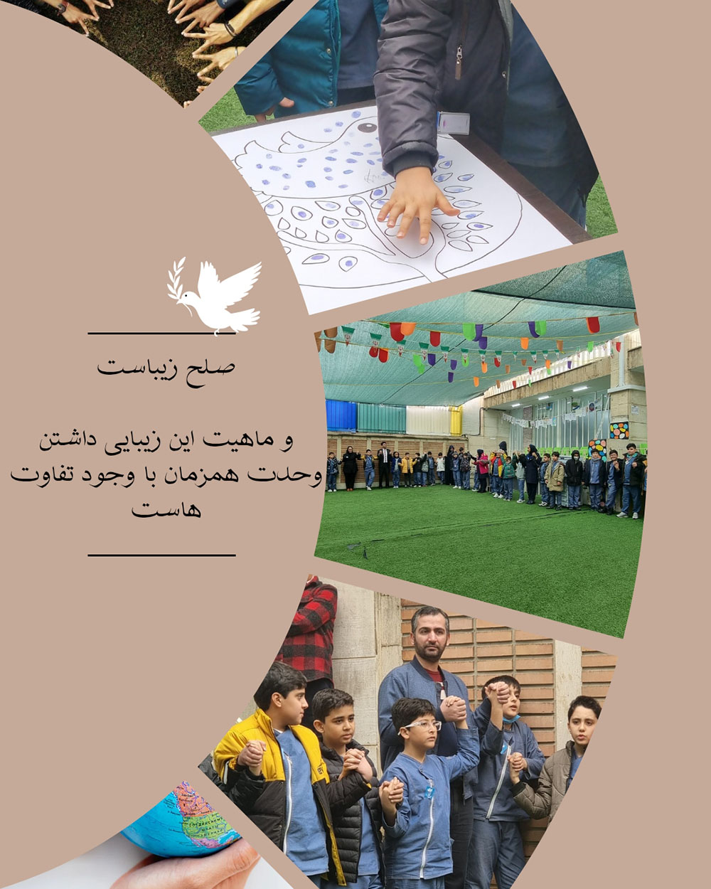 در روز صلح، دانشآموزان دبستان برجستگان محراب دست در دست هم، در کنار هم ایستادند تا پیام دوستی، همدلی و اتحاد را به جهانیان ارسال کنند.
